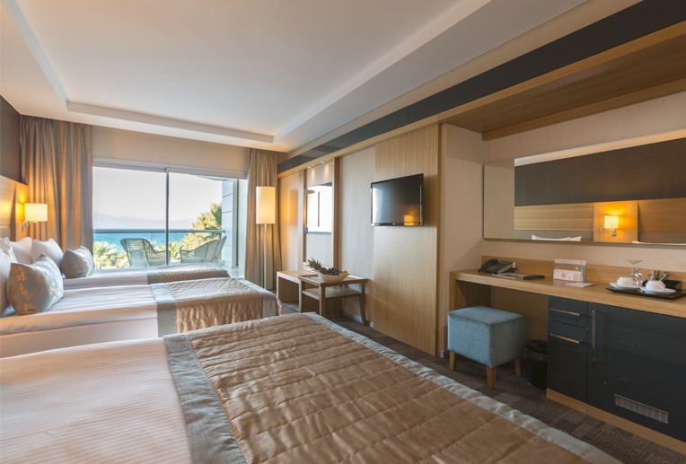 Ailenizle birlikte keyifli bir tatil geçirebilmeniz için, tek geniş oda şeklinde dizayn edilmiş odalarımızda deniz manzarasının keyfini çıkarmaya ne dersiniz. Aile Odalarımız; 31 metrekare, Flat screen TV, Uydu yayını, Kattle – Set up, Ücretsiz çay, kahve, Merkezi klima, Direk hatlı telefon, Emanet kasası (ücretsiz), 24 saat oda servisi, ücretsiz kablosuz hızlı internet, Sigara içilmeyen odalar, Özel banyo malzemeleri, Banyo telefonu, Duş, Boy aynası, Büyüteç ayna, Minibar, Saç kurutma makinası, Seperasyon yoktur, Zeminde halı bulunmaktadır. Oda başı en fazla konuk sayısı 4 dür.